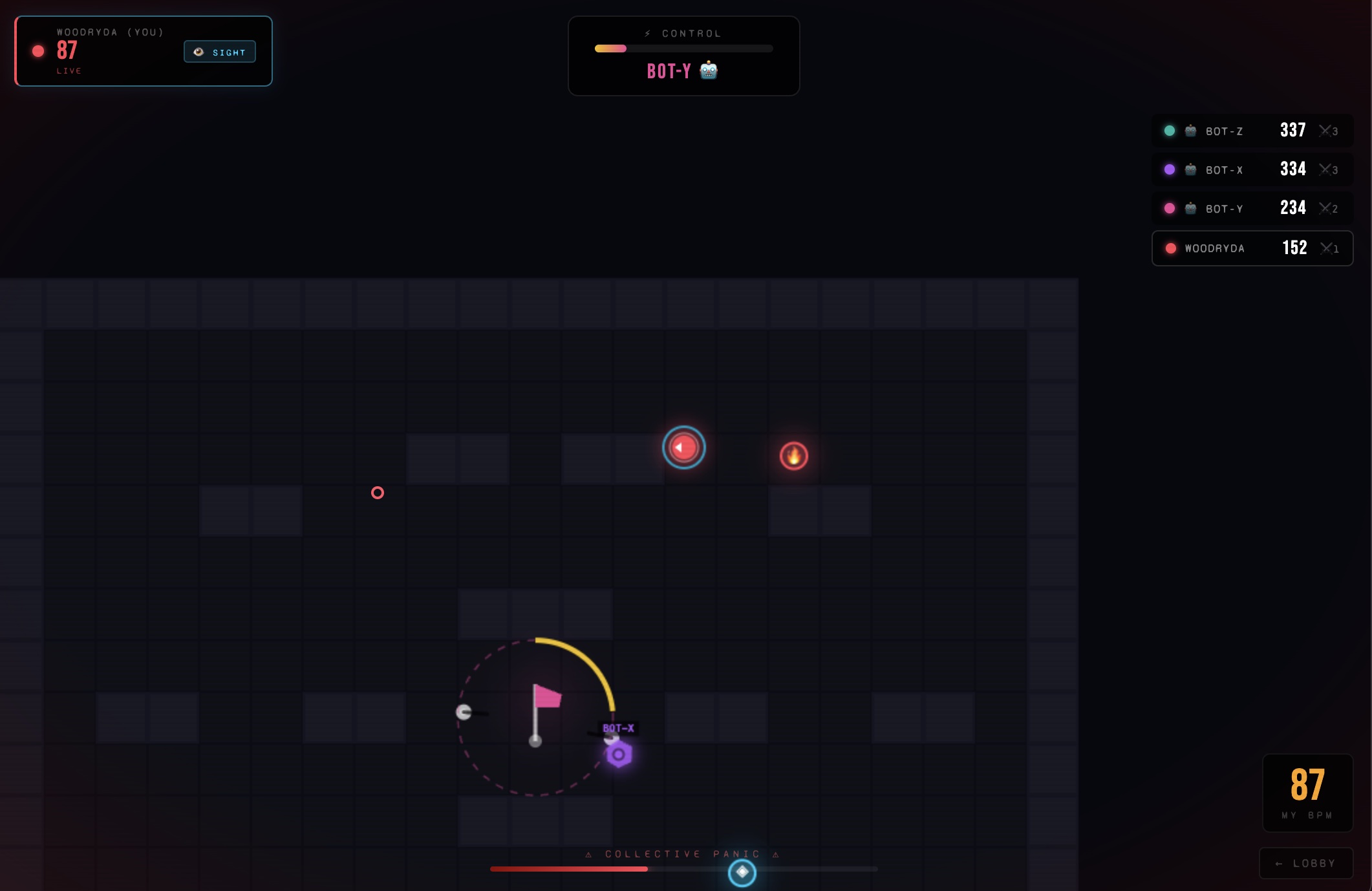 Connect a HypeRate-compatible heart rate monitor and your BPM becomes part of the game. Higher heart rate? Faster capture speed, stronger effects — your body is part of the controller.